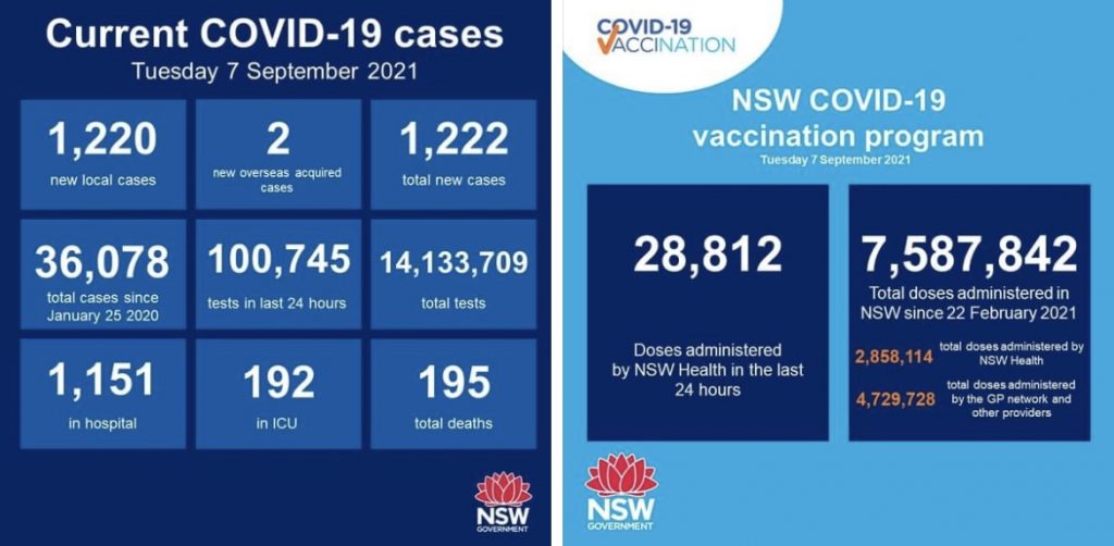 編輯:admin據新州衛生廳今日公佈數據顯示,截至昨晚8點的過去24小時內,新州新增1220宗新冠病毒本地確診個案,8宗死亡病例,共有28,812人接種了新冠疫苗。截至目前,新州本輪疫情確診人數已達30,456宗,死亡人數升至139人,接種新冠疫苗總數為758萬7842人。1151人住院治療,192人在ICU,75人使用呼吸機。