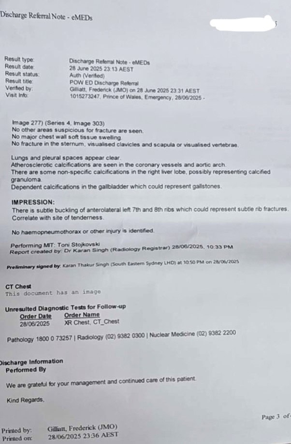 病人徵求我的建議,我詢問了受傷經過和受傷後當時的情況,並看了CT診斷報告,認為這個肋骨骨折是穩定型的,無需住院治療,建議找中醫骨傷科診治,有需要也可以在急診室觀察一晚。