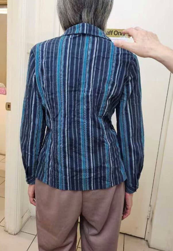 以下是24/04/2025经三次治疗后的照片,腰椎侧弯有很明显的改善,骨盆倾斜也纠正很多,病人也感觉腰臀痛减轻了,上下治疗床也较之前容易多了,相信继续彻底治疗,可以减少困扰多年的顽痛,较好的恢复功能。