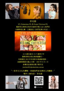 由李光弼 JCL Productions Pty Ltd 與Project Television Pty Ltd 共同主辦的全國兒童及青少年歌唱比賽,現正公開徵件,邀請來自全澳各地的兒童和年輕人參與,齊聲唱出主題曲《我們是澳大利亞》(We Are Australia)。