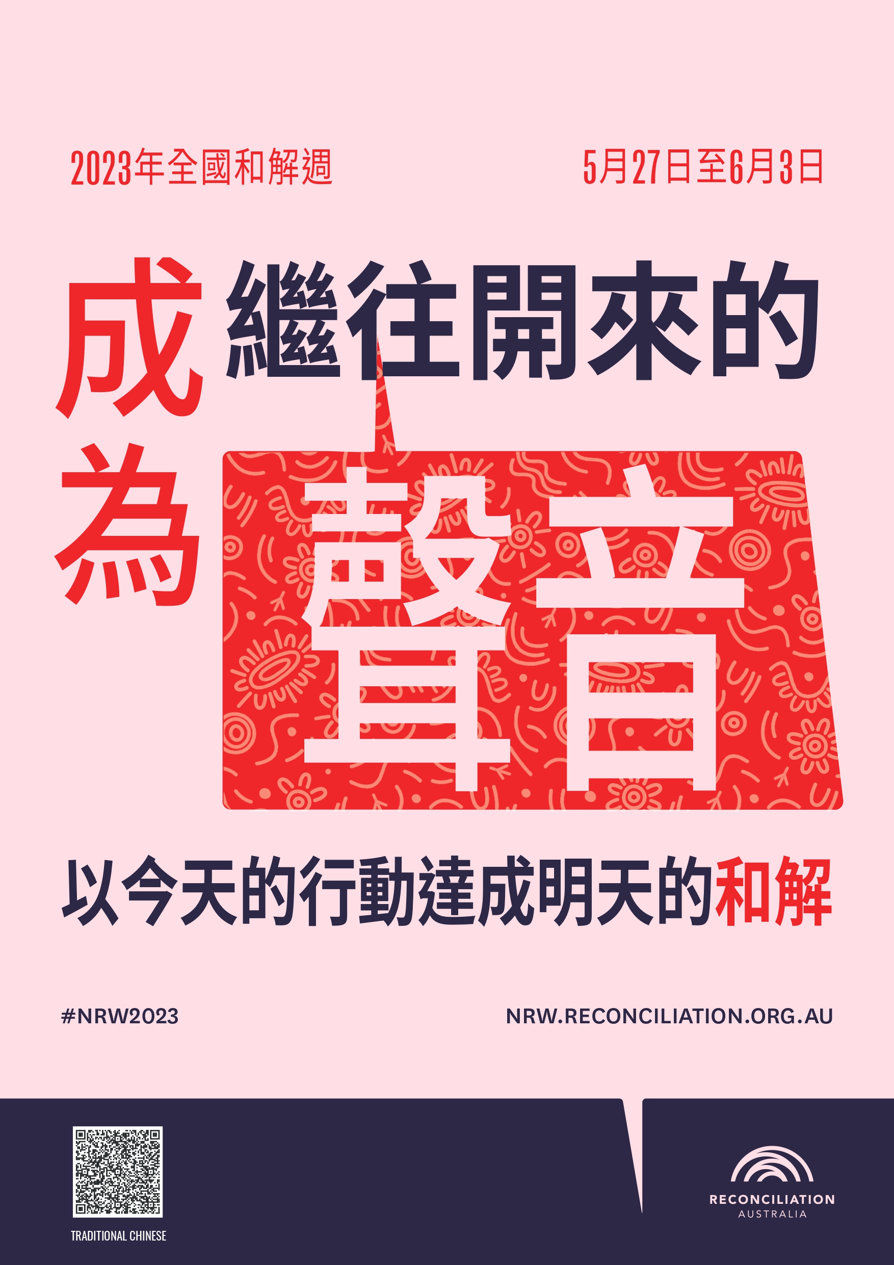 澳洲促进和解理事会(Reconciliation Australia)认识到移民在澳洲社会和政治形势中的地位日益重要,正在与研究调查和传播专门机构 Cultural Perspectives 合作,推出一项全新的多语言电台广播活动,以 10 种社区语言宣传 2023 年全国和解周。此外,还成功推出了多语种海报、传单和说明材料。