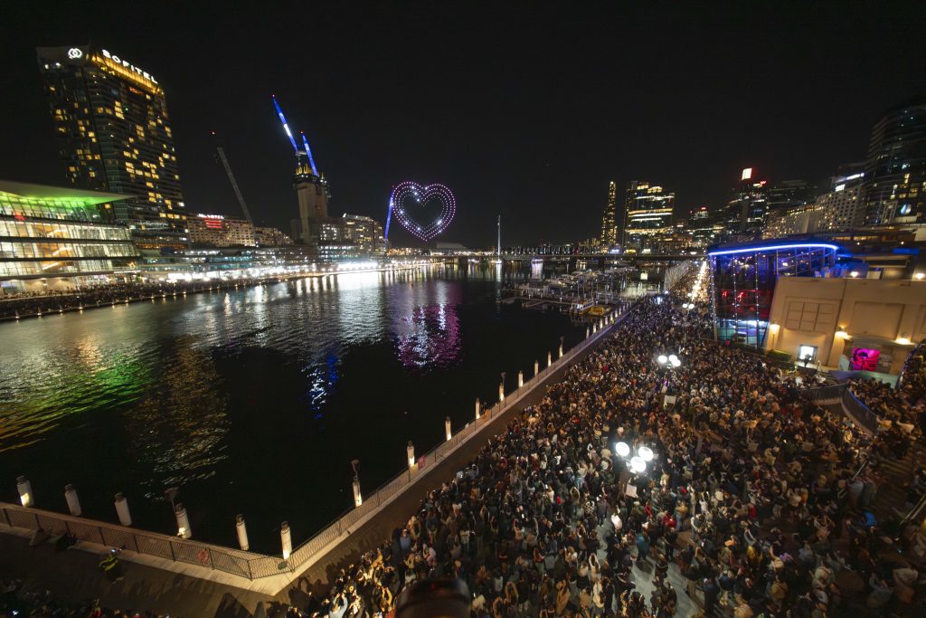 上週六晚間,一場免費的璀璨無人機燈光秀吸引了約 20,000 人 聚集在達令港前廣場,共同欣賞這場以春天為主題的繽紛表演。