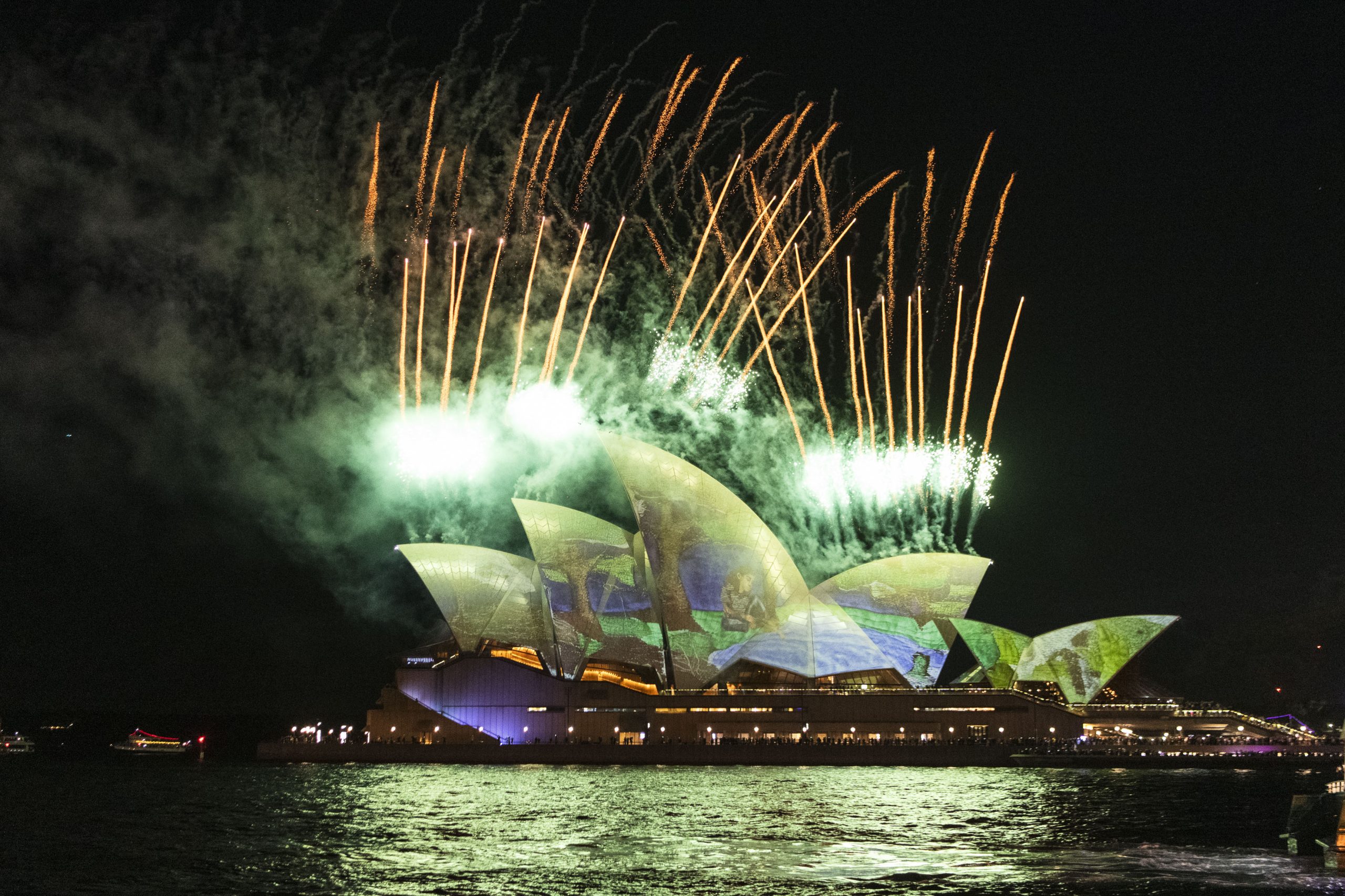 「亮燈儀式」以舞蹈「初見曙光」拉開序幕,這項活動是對原住民文化的慶祝。 該活動以悉尼歌劇院和海港大橋的標誌性背景為背景,透過充滿活力的歌曲、舞蹈和語言,展現了蓋蒂高民族(Gadigal people)傳統。
