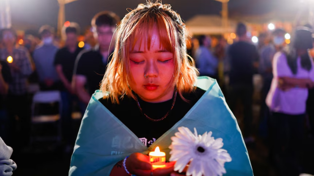 在当地时间周二晚上,数百人聚集在台北的自由广场参加年度守夜活动,他们在写有镇压日期的横幅上点燃蜡烛,同时听取活动人士批评中国政府涉嫌侵犯人权。