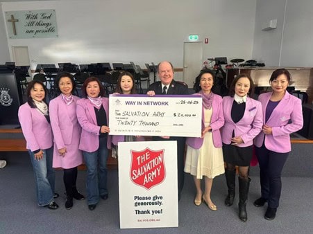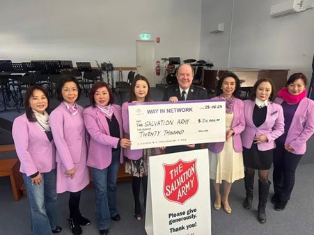 在捐贈儀式上,慧賢會會長蕭嘉敏Jessie Xiao將善款支票遞交予救世軍澳洲地區代表Gary Masters。會長致辭時表示:「慧賢會成立33年來,始終致力於爲移民女性在澳定居期間構建互助網絡。作爲紮根澳洲多年的慈善組織,我們始終懷抱着回饋社會的初心。此次與救世軍的合作,正是踐行這一理念的絕佳契機。令人感動的是,這次募捐活動僅用了一週時間就籌得2萬澳元,充分體現了慧賢會姐妹們的愛心與效率。我們希望這筆資金能為受災民眾帶來實質幫助,讓他們感受到社會的溫暖與支持。」