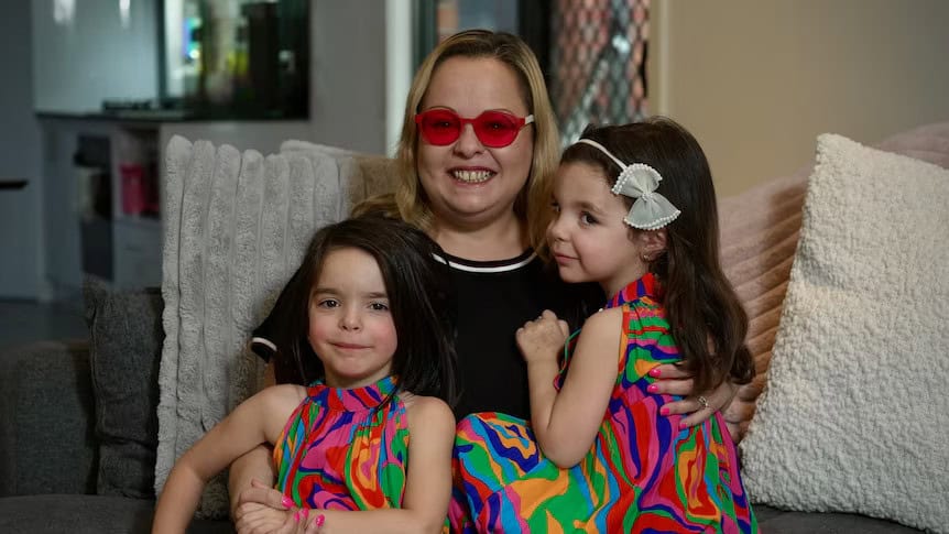 莉茲·特里波迪的雙胞胎女兒基拉 (Kira) 和安娜莉絲 (Annalise) 在格魯吉亞透過代孕出生(ABC News: Darryl Torpy)