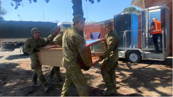 士兵們正在將便攜式廁所搬到Rochester(網路資料圖片)