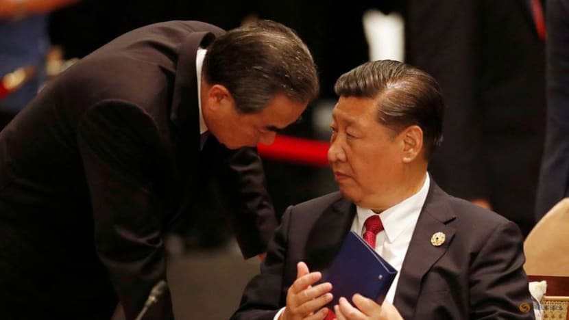 20171110日,中國國家主席習近平在越南峴港亞太經合組織峰會期間與外交部長王毅在APEC-東協對話會上交談(Reuters/Jorge Silva/File Photo