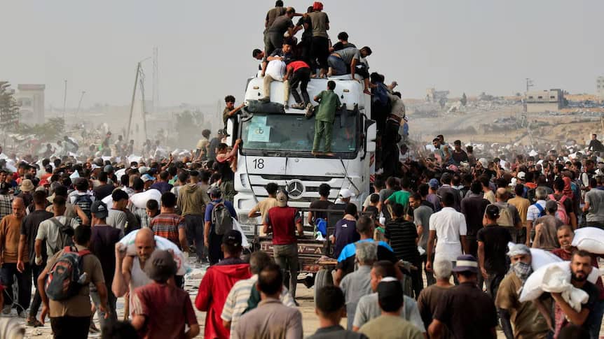 澳洲、英国、加拿大及其欧洲盟友发表联合声明称,现在需要采取紧急行动,制止并扭转巴勒斯坦地区的饥荒(Reuters: Hatem Khaled)