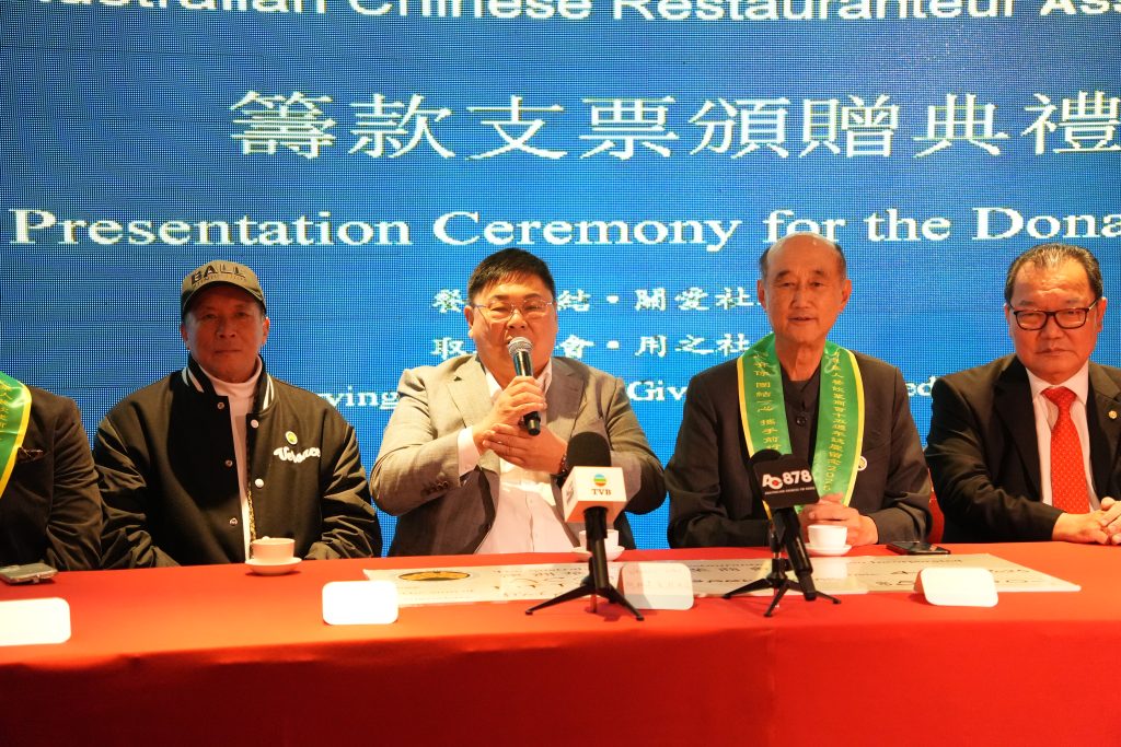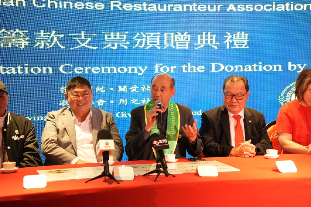 澳洲華人餐飲業商會會長車錫泰致辭表示能夠支持本地慈善機構,什至能夠幫助新州洪災是一件十分有意義的事情。他希望透過這樣的慈善捐款能夠告訴本地主流社會了解華人並非只會賺錢,更是會盡自己所能幫助澳洲。
