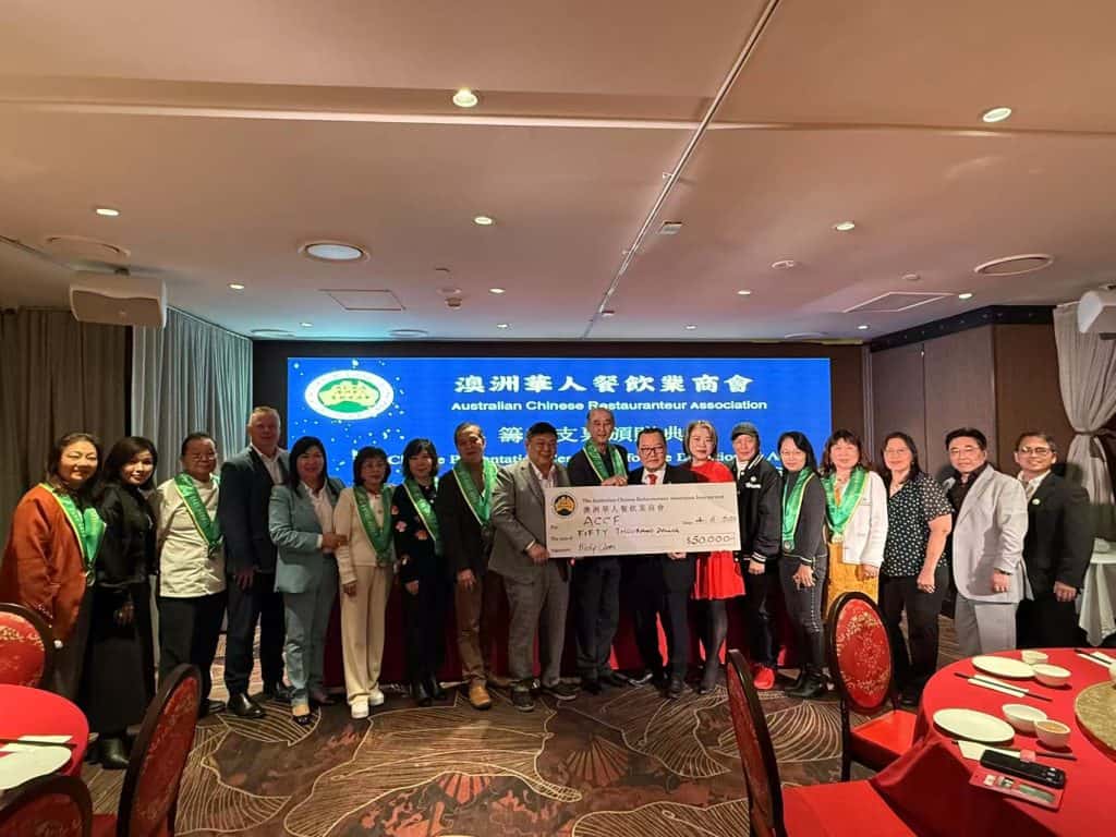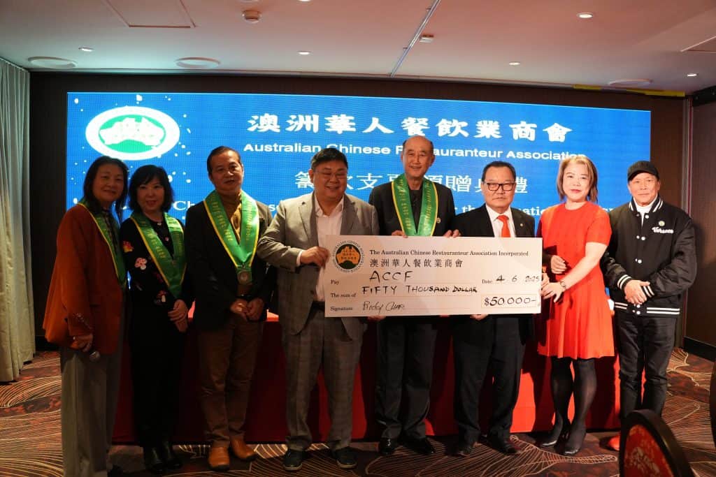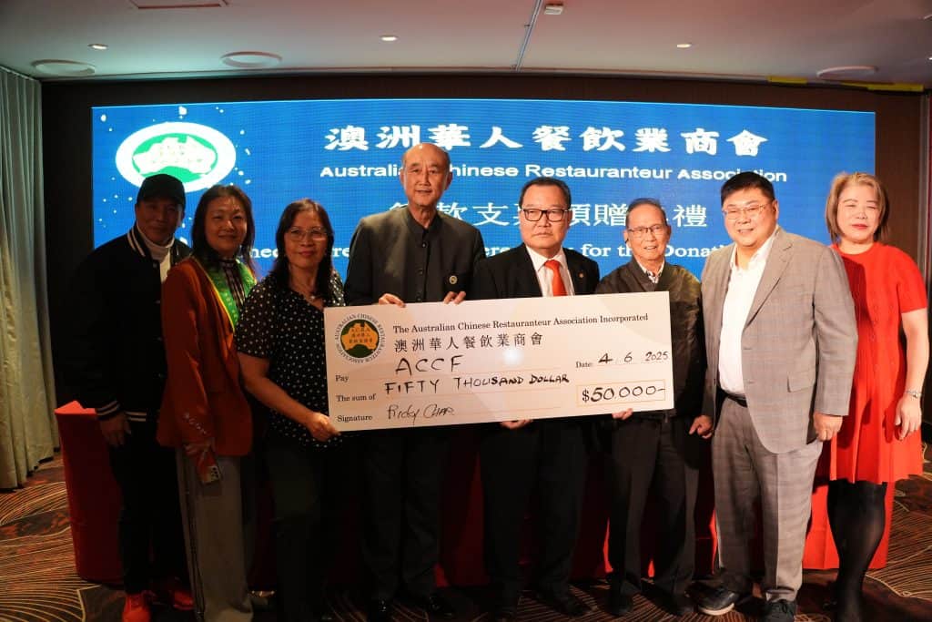 編輯:Editor澳洲華人餐飲業商會支票捐贈儀式於2025年6月4日在悉尼華埠八樂居舉辦,向澳洲華人公益金捐贈了$50,000澳幣,以支持新州水災重建。澳洲華人餐飲業商會會長車錫泰、財政陳昱坤、技術總監 Jacky Huang、活動總監陳偉代表澳洲華人餐飲業商會出席,而澳洲華人公益金會長謝國俊、副會長譚勁韶代表澳洲華人公益金出席,並邀請到阿林美食會長林永義的到來。