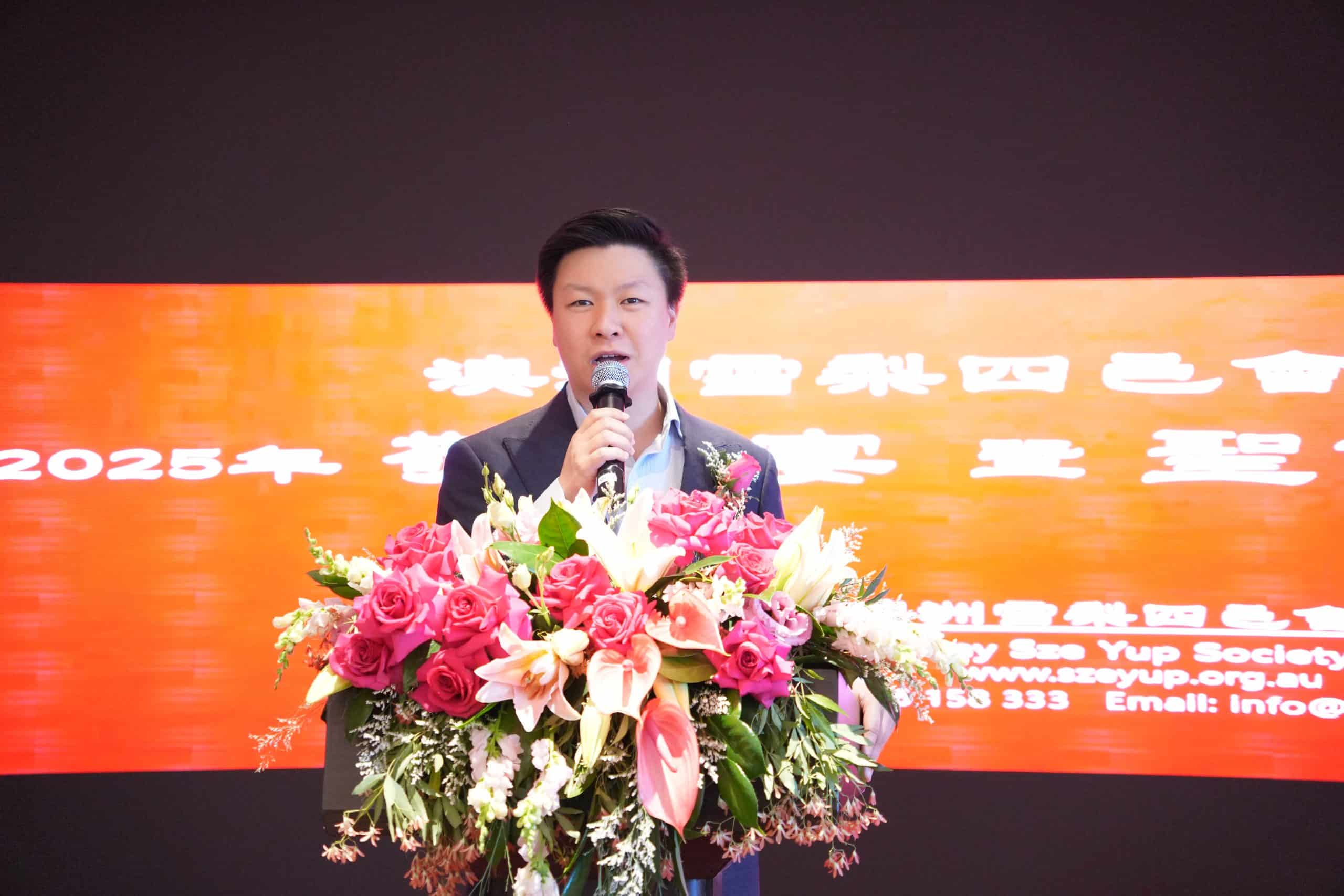 Parramatta 市市議員吳遠華在致辭表示表示,非常榮幸能出席是次活動,並讚揚會館多年以來持續舉辦敬老活動,讓更多鄉親能感受到社區的關懷與溫暖,並期望活動能年年延續,成為傳統與情誼的象徵。吳議員亦以個人作為恩平人後裔對四邑社群的情感。他指出澳洲華人擁有超過二百年的歷史,而四邑地區的鄉親更是最早一批踏上澳洲土地的移民之一。他回憶早前訪問台山時,當地仍保留著當年遠赴海外謀生者的歷史記錄,這些歷史見證了四邑人的勇氣、堅毅與奉獻精神。