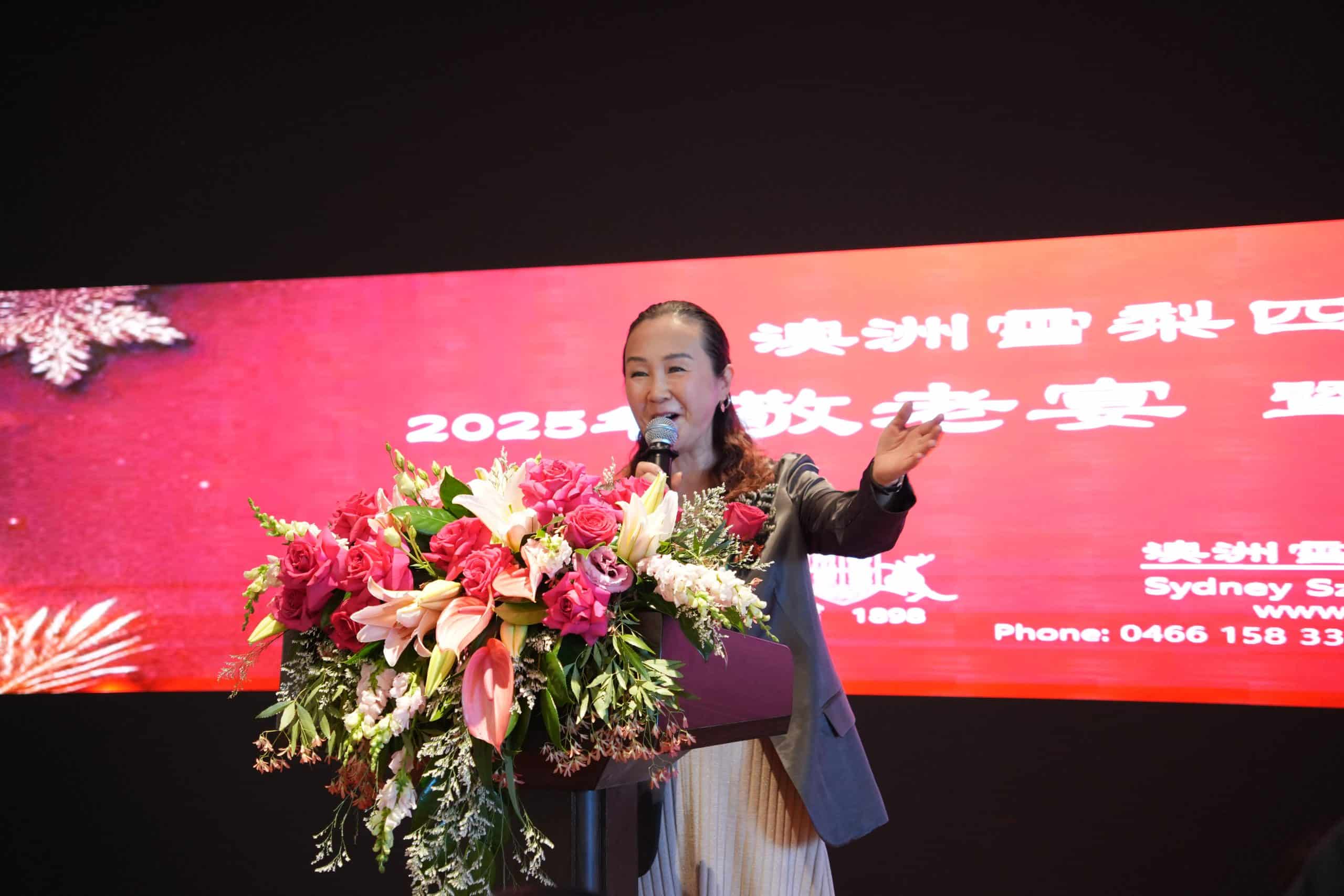 她提到,雪梨四邑會館的歷史可追溯至 1898 年 前後,當時沿用墨爾本四邑會館的章程與架構而成立。歷經一個多世紀的風雨傳承,今日的四邑會館依然秉持宗旨,團結四邑子弟,服務僑社,並延續先輩艱辛開創的精神。最後,張會長呼籲新舊會員繼續支持會務、踴躍參與活動,共同推動四邑文化傳承與社區服務。她以誠摯的語氣祝福所有長者身體健康、福壽綿長,並希望活動圓滿成功。