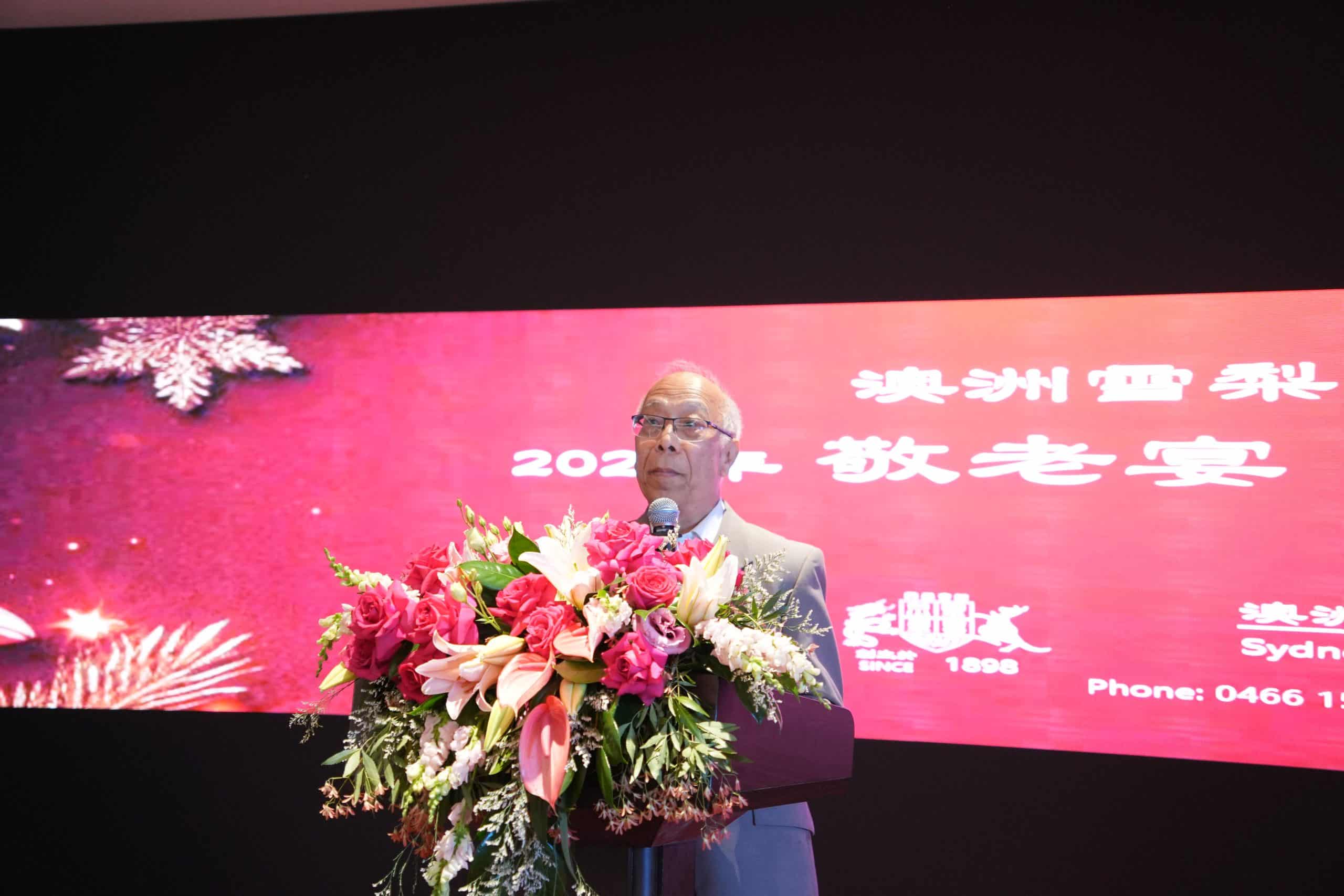 吳議員提到,近年他推動在 Parramatta 建立唐人街計劃,正是為了紀念早期華人移民的貢獻,並讓更多澳洲社會了解這段華人拓荒歷史。他亦特別感謝長者們的辛勞與付出,指出他們是華人社區的根基。他指出許多前輩初到澳洲時不懂英文,生活艱辛,卻用雙手為下一代開創更好的未來。今天澳洲許多成功的律師、議員與企業家,都有四邑的血脈與精神。最後,他再次感謝四邑會館舉辦這場有意義的敬老活動,並祝願所有長者身體健康、笑口常開,四邑精神永續傳承。