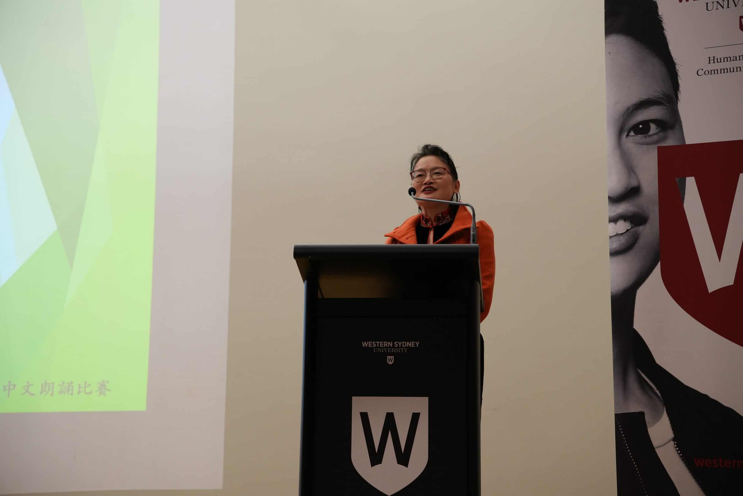 身為協辦方代表,西悉尼大學人文與傳媒藝術學院副院長齊汝瑩教授在致詞中表示,西悉尼大學與紐修威中文教育理事會的合作已持續近三十年,從她的孩子在校學習時便結下淵源,長期攜手推動中文教育和跨文化交流。她指出,西悉尼大學培養了一群優秀的學生,成為具備深厚學術知識、跨文化交流能力與全球勝任力的教師和人才。齊教授亦表示,這場朗誦比賽不僅是語言能力的展現,更是文化交流與情感溝通的重要平台。