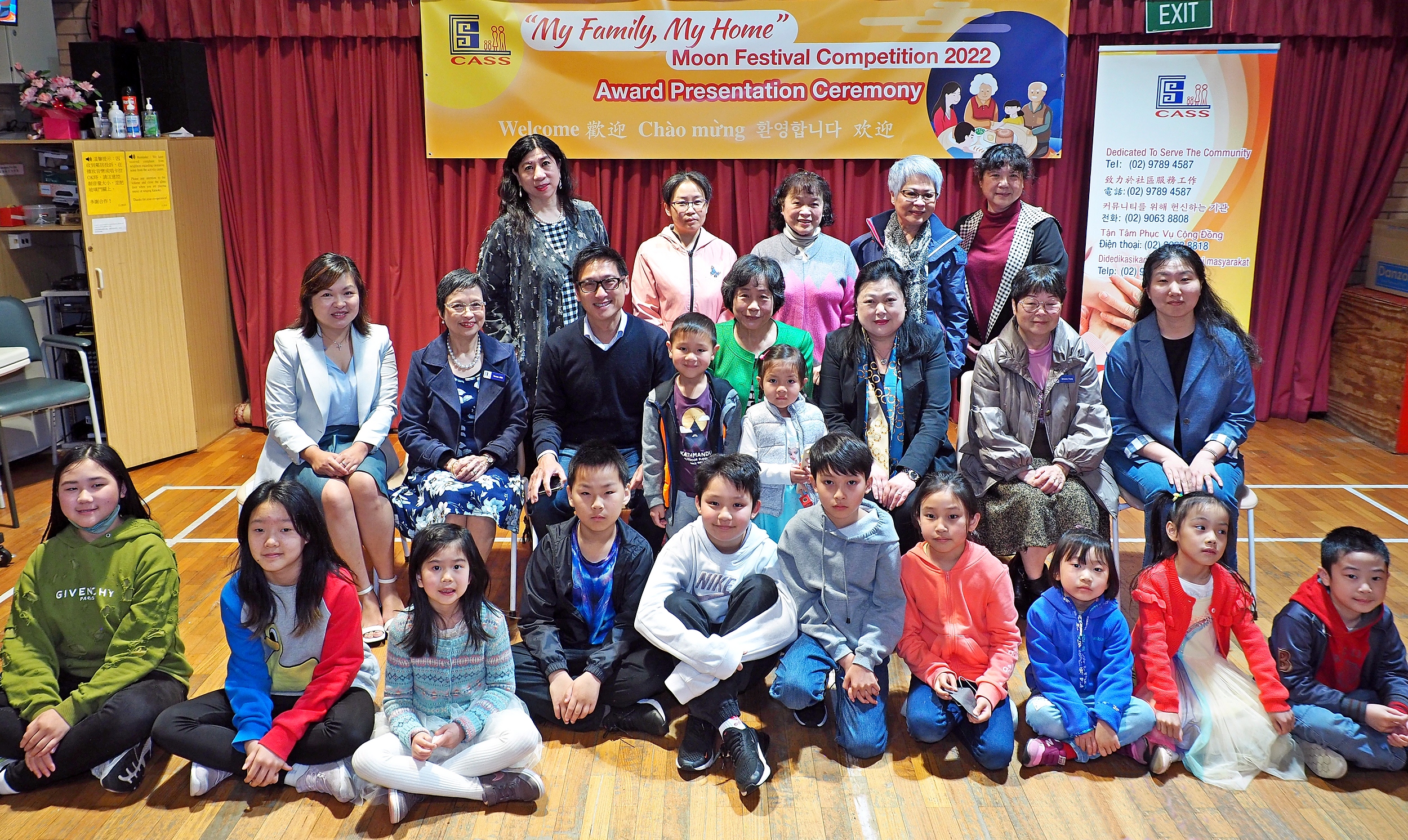 10月6日(星期四)上午,中秋節徵稿比賽頒獎典禮在華人服務社總部禮堂舉行,逾60名來自華裔、韓裔、越南裔等不同社區的來賓歡聚一堂。出席人士有華人服務社董事局成員陳玲、李宗恩、朱劉玉英及陳莉蓮;這次比賽活動的部份贊助商包括新州議員李逸仙、小鯨魚健康中心董事何太及iRest按摩椅專門店經理李女士;以及獲獎者們及其家人。