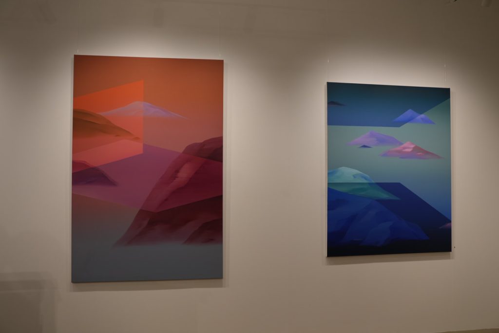 此次展出的作品包括大尺幅油畫及多幅紙上新作,通過幾何形態與山水意象的交織,展現自然、記憶與想像的融合。