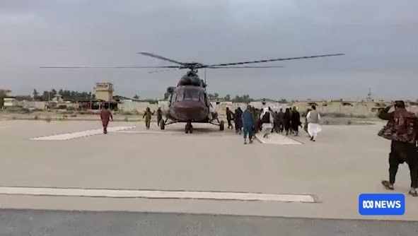 阿富汗地震傷者搭乘直升機抵達軍事基地(Reuters)