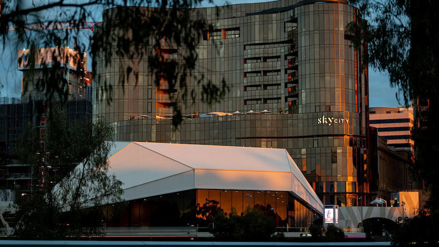 位于阿德雷德中央商务区的阿德雷德节庆中心和天空城赌场(ABC News: Che Chorley)