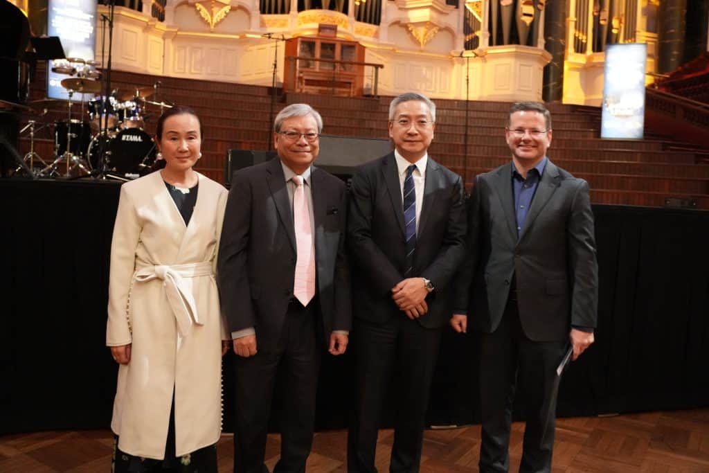 更生會會長楊迺賢致辭笑言感謝在當晚同時有州橄欖球賽進行的情況下,大家仍選擇出席支持是次活動。他提到更生會與經貿辦同樣已經30歲,很高興能夠一直共同服務社區。更生會在過去數十年間支援了數以萬計的華人癌症病友,秉持著「無人應獨自面對癌症」的理念。他特別指出,香港駐悉尼經貿辦不僅從2017年的音樂會起就開始支持更生會,在更早之前就已積極參與更生會的活動中,顯示各界除關注商貿外,也以社區福祉為念。他直言在商界打拼的大家並沒有忘記社區的需要,善心是從不會被遺忘。