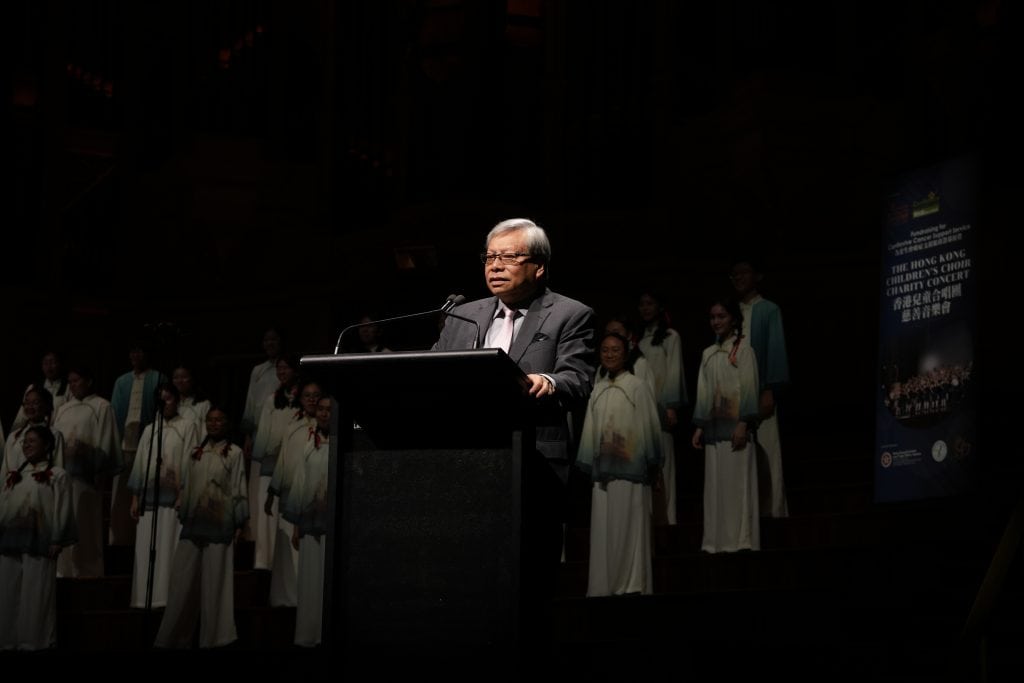香港兒童合唱團前董事會主席任德煇代表該團致辭