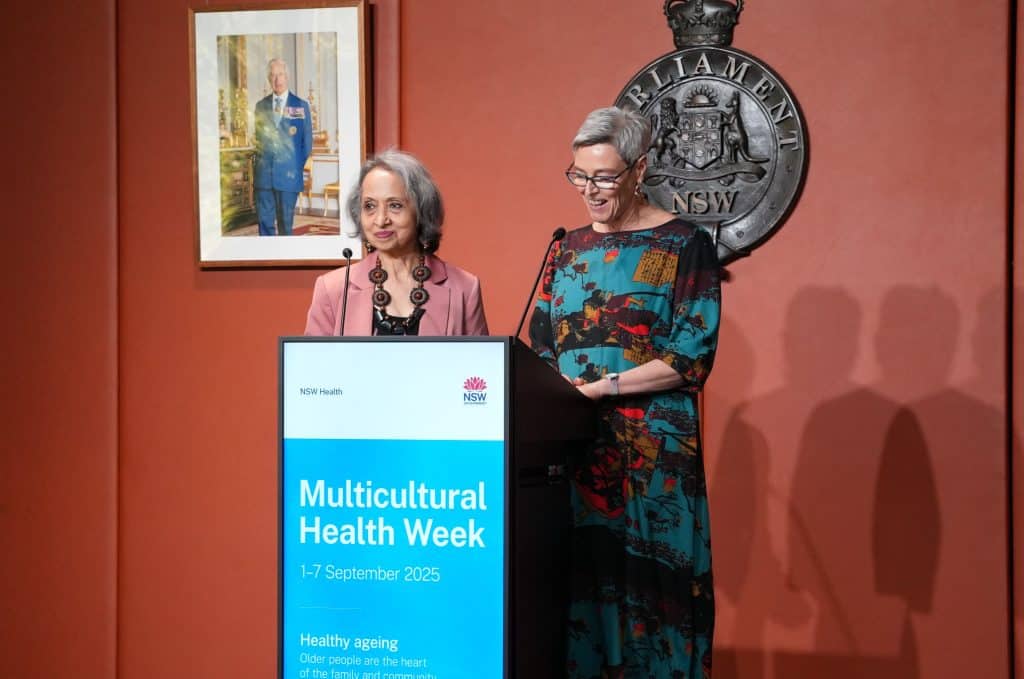 新州多元文化健康傳訊服務(MHCS)主任 Lisa Woodland 與社區代表、Pink Sari 協會會長 Shantha Vishwanathan 一同發言。Lisa 向到場嘉賓致謝,特別感謝長期支持活動的 NSW Health 各部門與合作夥伴。她指出,隨著人口逐漸老齡化,長者健康狀況成為全社會必須正視的課題。她強調,今年的健康週聚焦於幾個重點,包括每日運動以預防跌倒、健康飲食、保持社交聯繫,以及積極參與癌症篩檢。Lisa 表示:「我們需要確保長者不僅僅是延長壽命,而是能在健康的狀態下度過更多美好時光。」她同時感謝來自不同社區的代表,協助將資源翻譯成超過40種語言,讓更多多元文化家庭能夠接觸到關鍵健康資訊。