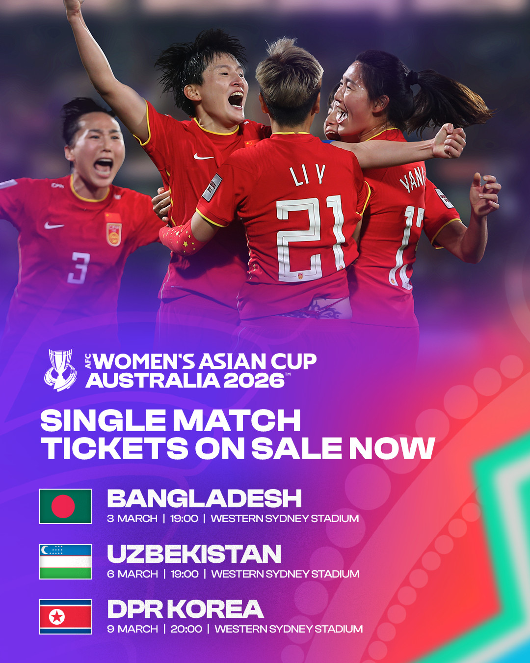 亞洲最頂尖的女子足球勁旅即將齊聚澳洲,現在正是中國女足(China PR)球迷鎖定座位、展現支持與民族自豪感的時刻!